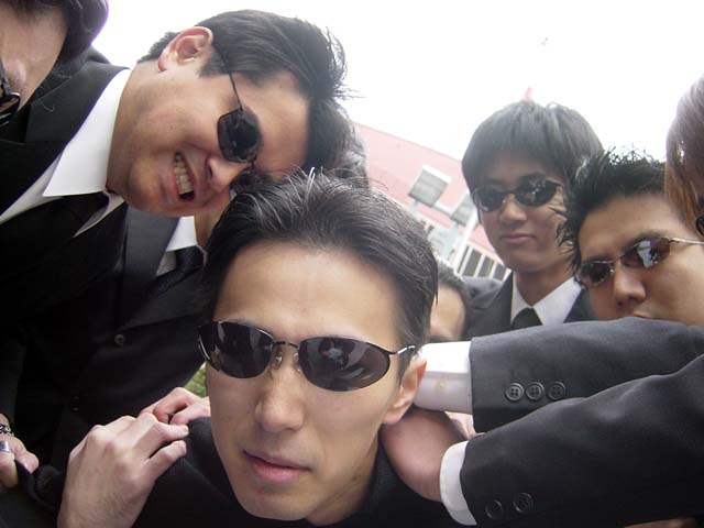 | ※補足説明『成瀬が主催するUNIONという同人サークルは昔、2ちゃんねら〜と愉快なバトルをくりひろげました。平たく言うと叩かれたワケだが。サークル側は2ちゃんねるに書き込まずサークルのBBSにレスをつけ、2ちゃんねる同人板の とあるスレを相手に象のように会話しました。(UNIONは湯煮音と伏字、成瀬は成Pと伏字で書き込まれてました) ま〜〜〜そんなワケで、成Pと2ちゃんねら〜は宿敵同士なワケで んで、夏のコミケット64でネオのコスプレしていた成瀬とマトリックスOFFのスミスがばったり遭遇。 それでマトオフを知り、今回のマトリックスレヴォリューションズ in Tokyoに新宿(D班)のネオとして参加。 多分、冬コミのコスプレ広場でも宿命の対決は続くだろう・・・・なぁ |
